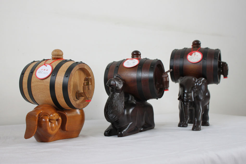 手工打造,不斷發(fā)展 把挑選的木材進行品質(zhì),我們只使用品質(zhì)好的原材料進行裁切打磨,每一塊二木材必須要平整統(tǒng)一,這樣在材料無蠟拼接時才可以無縫隙。為了使產(chǎn)品在日后使用時更長久衛(wèi)生,拼接成型的產(chǎn)品還要進行高溫預(yù)熱、、安裝端板等系列強化程序。此,雛形產(chǎn)品便加工完成。為了使產(chǎn)品更加美觀牢靠,還要經(jīng)過磨砂拋光、烘烤碳化、壓箍等工藝進行美化、增加強度的處理,經(jīng)過的純手工處理后的酒桶才可以經(jīng)得起歲月考驗。